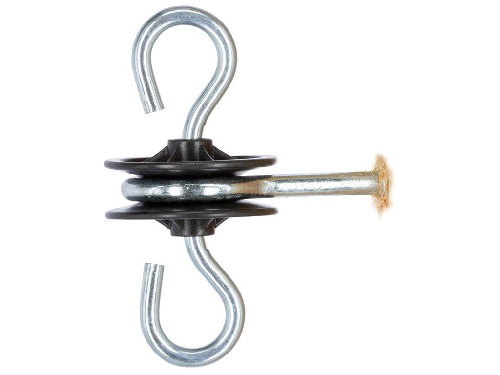 Bránový izolátor pre elektrický ohradník, pre ľahké upevnenie brány a vodiča, otočné háčiky o 360°, pozinkovaný vrut Ø 6 mm. Objavte perfektný spôsob na vytvorenie brány u Vášho elektrického ohradníka! Vďaka tomuto bránovému izolátoru ľahko pripevníte bránu a vedľajší vodič, na vytvorenie ľahkého prístupu do ohradníka. Izolázor je tvorený dvoma háčikmi, ktoré sú otočné o 360°. Nie je vhodné pre vodiče s medenými drôtmi, inak je jeho použitie veľmi praktické a bezpečné. Pripevnenie do dreva je ľahké pomocou pozinkovaného vrutu.