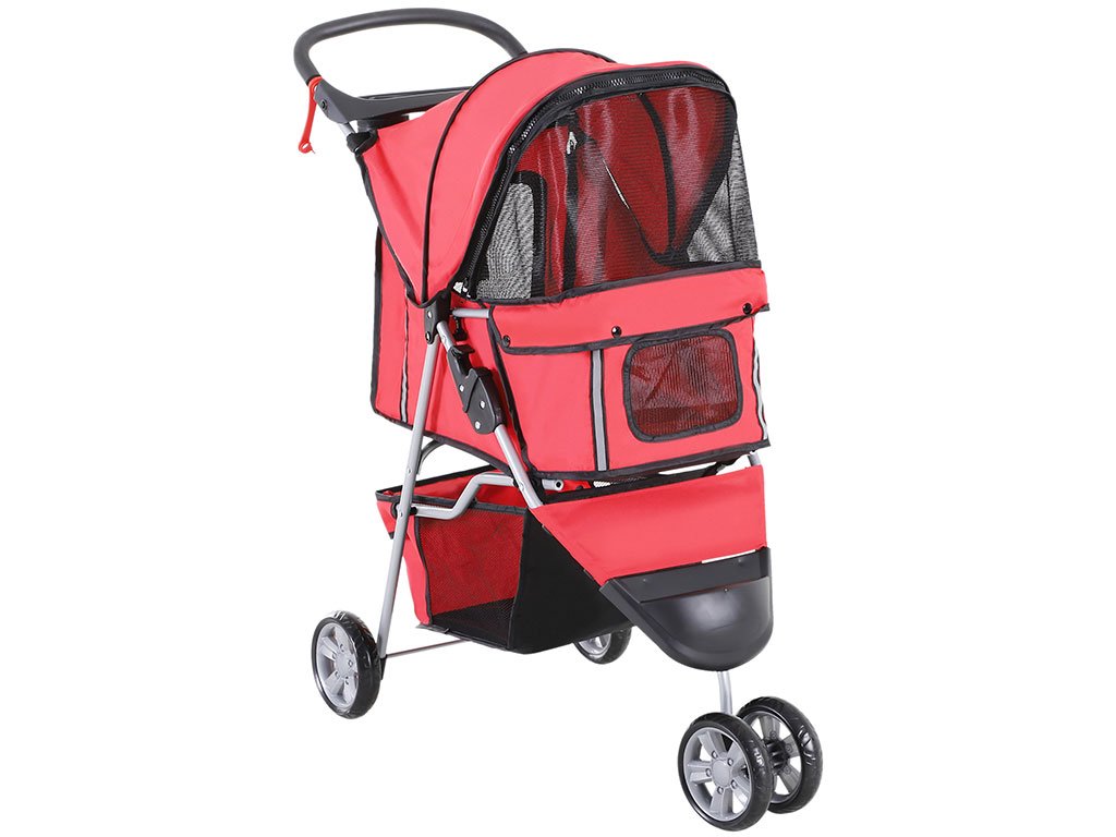 Pohodlný kočík pre psov môžete vyžiť na prechádzky do mesta, alebo do parku. Príjemnú jazdu zaistia dvojité otočné predné kolesá a zadné dvojité pevné kolesá, ktoré je možné zaistiť dvoma brzdami.