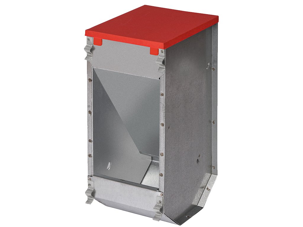 Závesné kŕmidlo pre králiky a hydinu s kapacitou kŕmenia 1,3 kg. Z jedného oddielu sa pohodlne nakŕmia 1 - 2 králiky. Pozinkovaná úprava a 2 mm otvory na dne udržujú kvalitu krmiva a bránia pred zaparením. Jednoduchá manipulácia a nasypanie krmiva vďaka odklopnej strieške. Kŕmidlo sa jednoducho čistí. Pred inštaláciou je nutné vyrezať otvor do pletiva klietky alebo ohradníka, aby sa zvieratá mohli dostať na kŕmenie v krmítku. Kŕmidlo sa potom ľahšie zavesí za 4 háčiky. Rozmery: 12x12x25 cm.