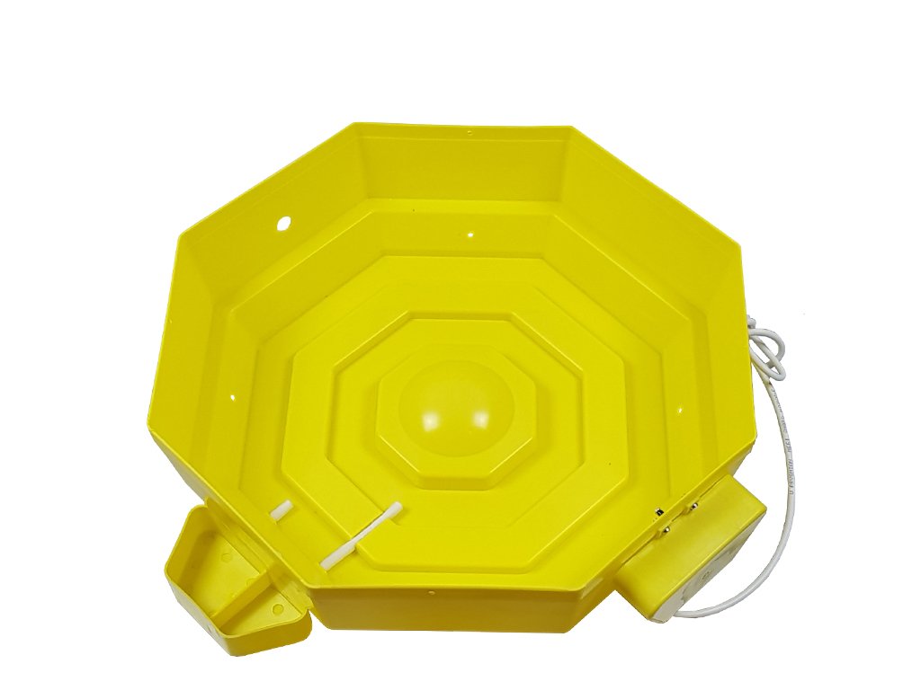 Spodný kryt liahne je vybavený modulom pre automatické otáčanie vajec v otočnom rošte (rošt nie je súčasťou balenia) a nádržkou na prívod vody k potrebnému doplňovaniu vody k regulácii vlhkosti vnútri liahne.