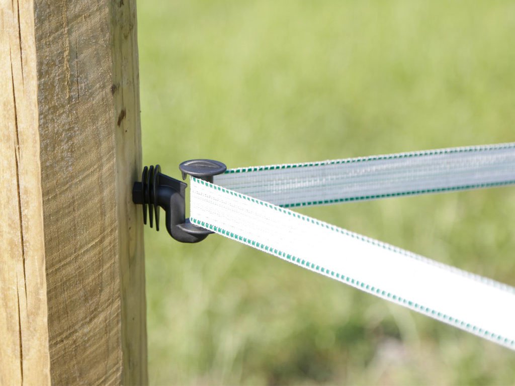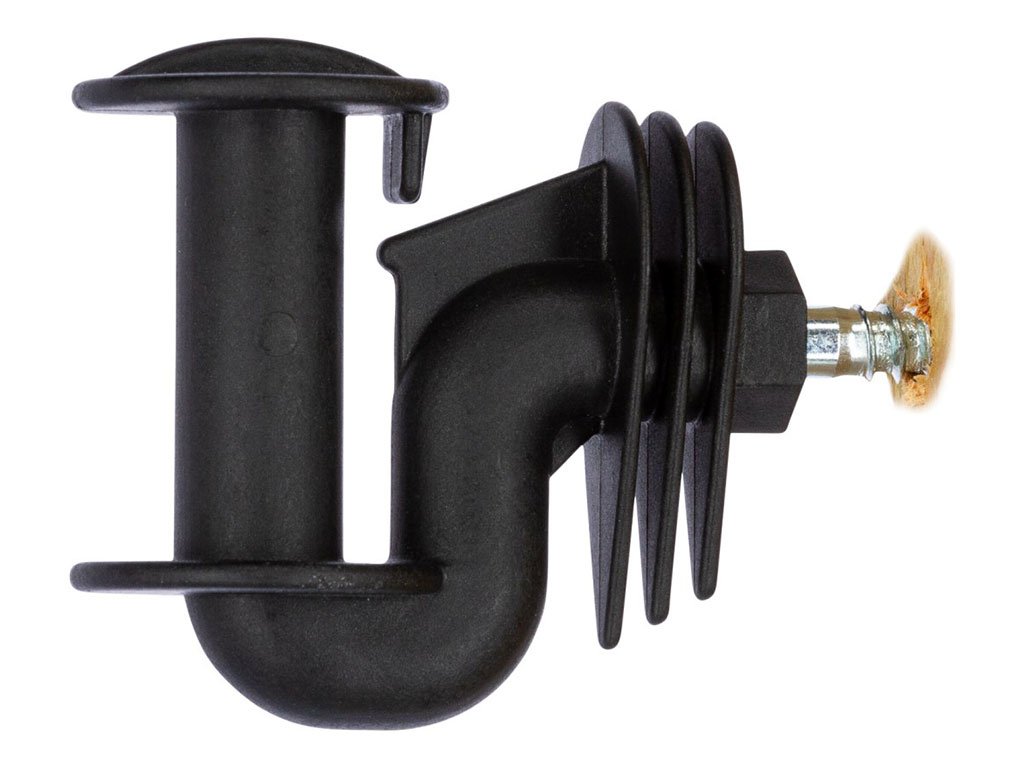 Rohový izolátor pre elektrický ohradník, určený pre ohradníkové pásky, vynikajúce izolačné vlastnosti, chráni pred prepätím, skrutka Ø 8mm. Objavte ideálneho pomocníka na vytvorenie elektrického ohradníka pre Váš chov! Tento extra silný izolátor je vyrobený z veľmi odolného polyamidového plastu a zaisťuje bezpečnú a spoľahlivú inštaláciu širokých pásikov do 40 mm. Páska sa voľne pohybuje po hladkom, zaoblenom povrchu, ktorý minimalizuje trenie a opotrebenie. Pozinkovaná skrutka Ø 8 mm zaručuje stabilitu a pevné uchytenie. Špeciálny tvar izolátora chráni pred prepätím a zabraňuje uvoľneniu vodiča. Materiál odoláva vysokým ťahovým silám, UV žiareniu aj poveternostným vplyvom, čo zaisťuje dlhú životnosť pri vonkajšom použití.