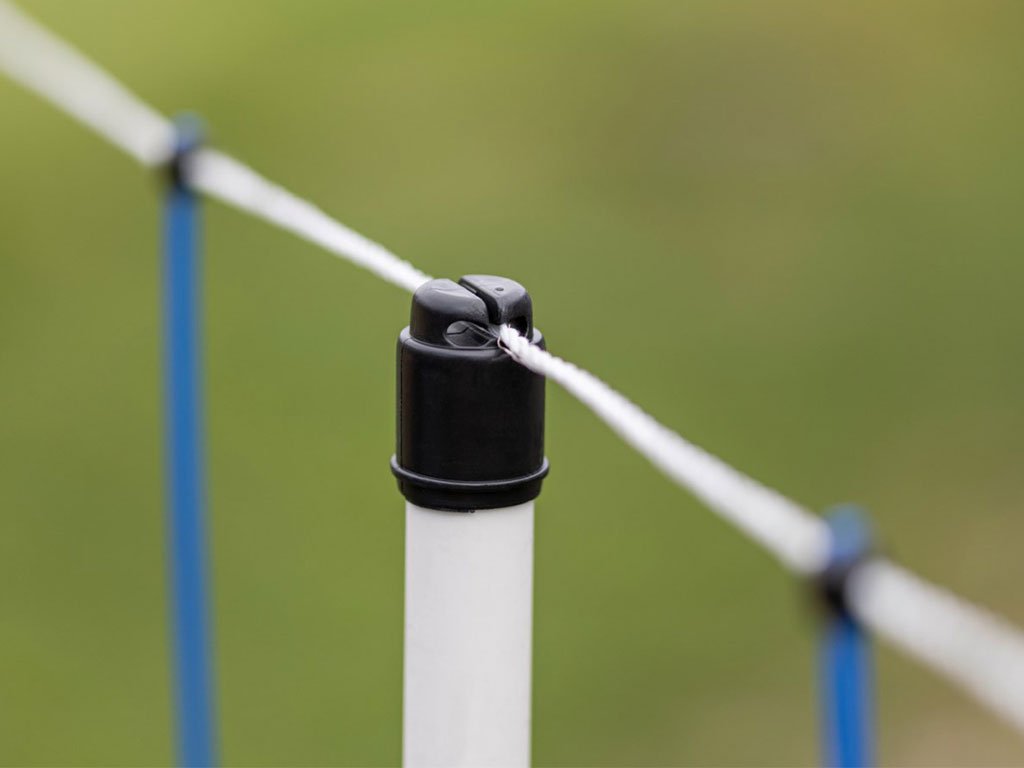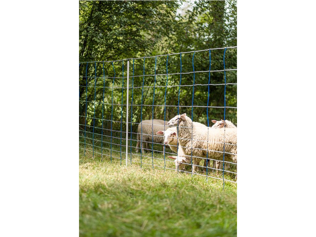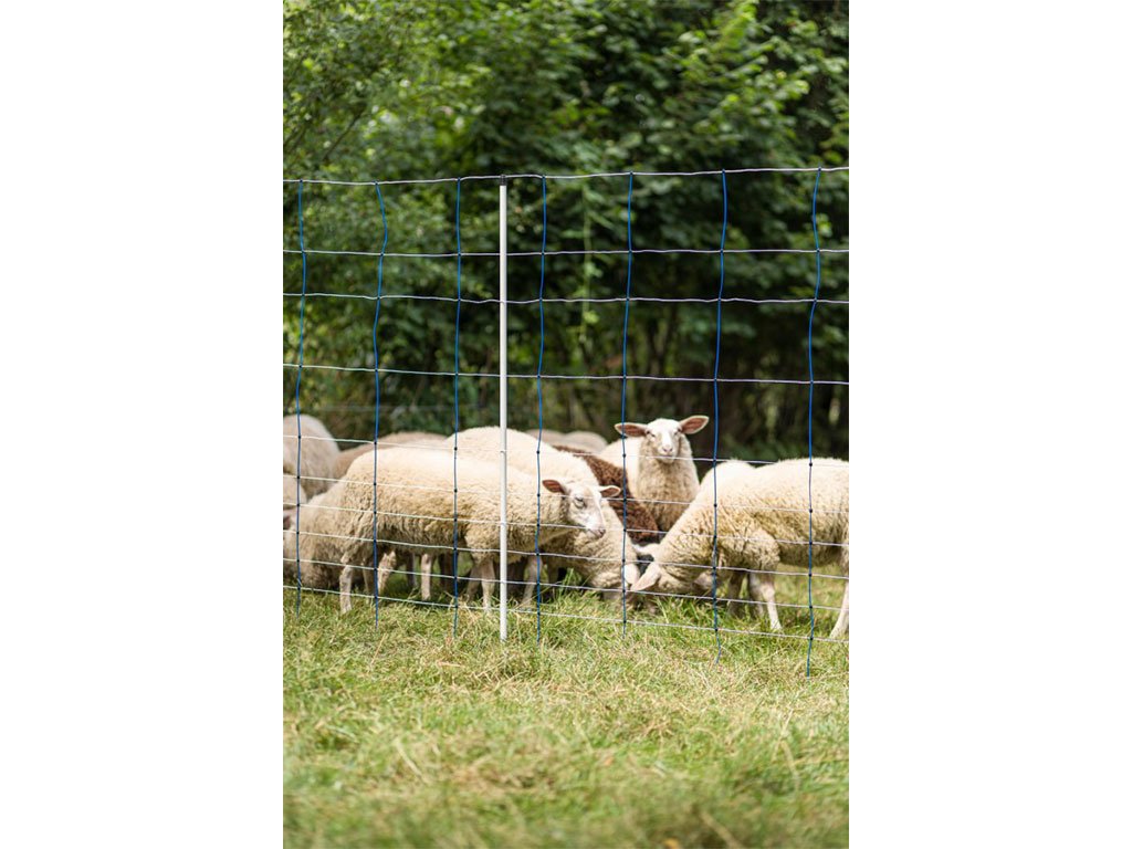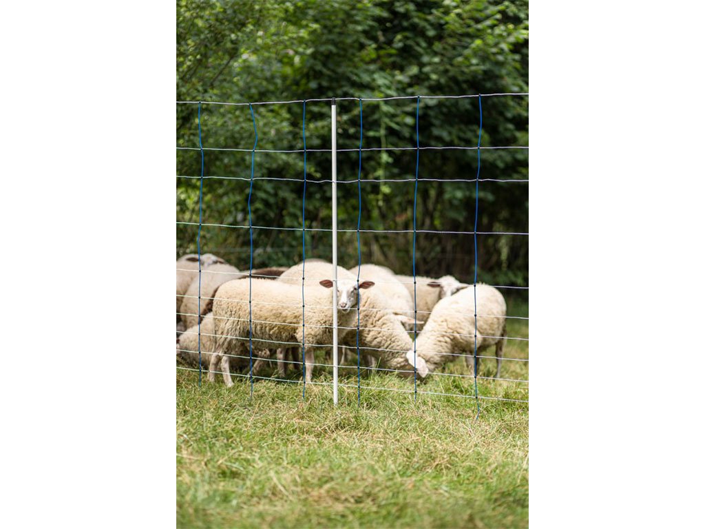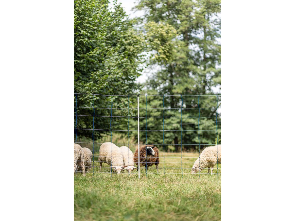 Vodivá ohradníková sieť ponúka veľmi pokročilé riešenie pre flexibilnú a spoľahlivú ochranu výbehov. Vďaka svojej nadštandardnej výške 145 cm, pevnej konštrukcii a kvalitným materiálom je vhodná pre rôznorodý chov – od menších koní cez osly až po alpaky. Extra robustné stĺpiky s dvojitými pozinkovanými hrotmi zaisťujú stabilitu aj v členitom teréne, zatiaľ čo vodivý systém s veľmi nízkym odporom s kombináciou medených a nerezových vodičov umožňuje efektívne a rovnomerné rozvedenie elektrických impulzov po celej dĺžke siete. Tieto mimoriadne vysoké siete sa výborne hodia aj na zriaďovanie mobilných nočných kotercov, a to ako pre kontrolované prenocovanie zvierat, tak ako prevencia proti predátorom. Sieť sa ľahko inštaluje a jej premiestnenie zvládnete v priebehu niekoľkých minút, čo oceníte najmä pri rotácii pastvín. Viditeľná bielomodrá farba, pevné zvarené spoje a kvalitné vodivé materiály napomáhajú dlhodobej a bezpečnej prevádzke. Bez zložitej montáže a s vysokou variabilitou využitia predstavuje táto sieť praktickú voľbu pre každého, kto hľadá odolné a funkčné riešenie ochrany zvierat v teréne. Sieť je možné ľahko pripojiť k elektrickému zdroju a vytvoriť tak plnohodnotný elektrický ohradník.