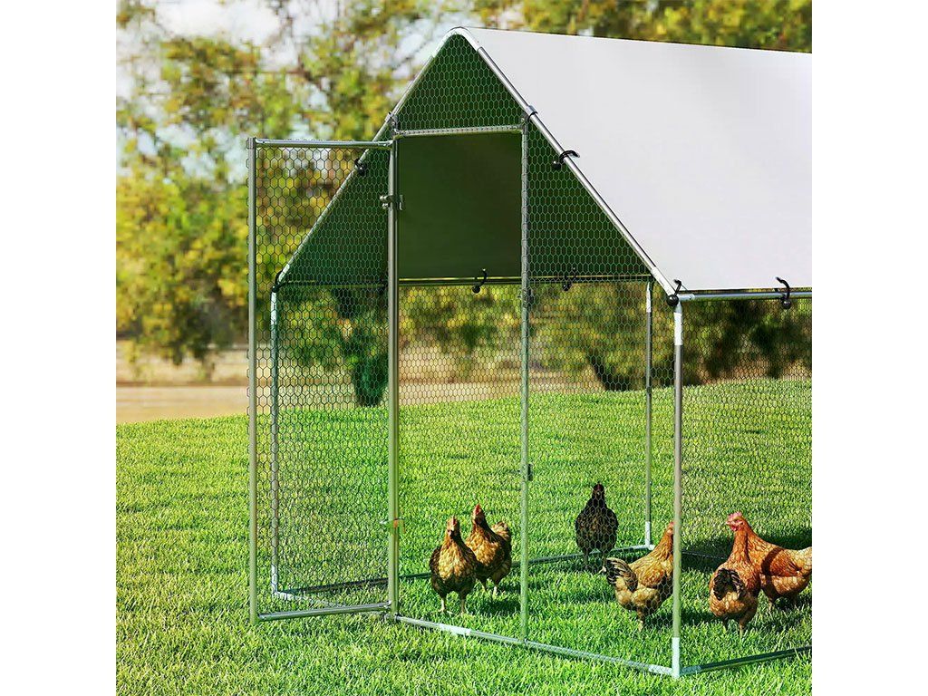 Výbeh pre hydinu vhodný pre 4-6 sliepok, robustná konštrukcia, ochranná plachta, dvojité zámky, rozloha 4 m2, rozmery 200x200x200 cm. Hľadáte dostatočne veľký a bezpečný výbeh pre Váš chov sliepok? Objavte priestranný výbeh pre sliepky s rozlohou 4m², ideálny pre 4–6 sliepok, ktorý bude perfektným domovom pre Váš chov. Tento robustný vonkajší výbeh je vyrobený z pozinkovanej ocele a drôteného pletiva s plastovým poťahom, ktorý spoľahlivo chráni vaše sliepky a odoláva každodennému používaniu aj poveternostným vplyvom. Výbeh je vybavený kvalitnou strieborne potiahnutou Oxfordskou tkaninou, ktorá je vodeodolná a odolná voči UV žiareniu, takže sú vaše sliepky v suchu, bezpečí a pohodlí po celý rok. Dvojité zámky zabraňujú úteku sliepok, a vďaka veľkým vstupným dverám je ľahké vojsť do výbehu, doplniť kŕmenie alebo vyčistiť priestor. Tento výbeh je možné tiež perfektne kombinovať s kurínom (nie je súčasťou balenia) a vytvoriť tak ideálny domov pre váš chov.